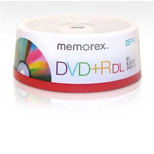 Memorex DVD+R Double Layer media stores up to 8.5GB of data files and approximately 240 minutes of video (SP mode) on a single disc as compared to 4.7GB on a single layer disc. DL discs can be played back on most DVD players and offer users the convenience of storing long length programming, sporting events and video footage on one disc.
